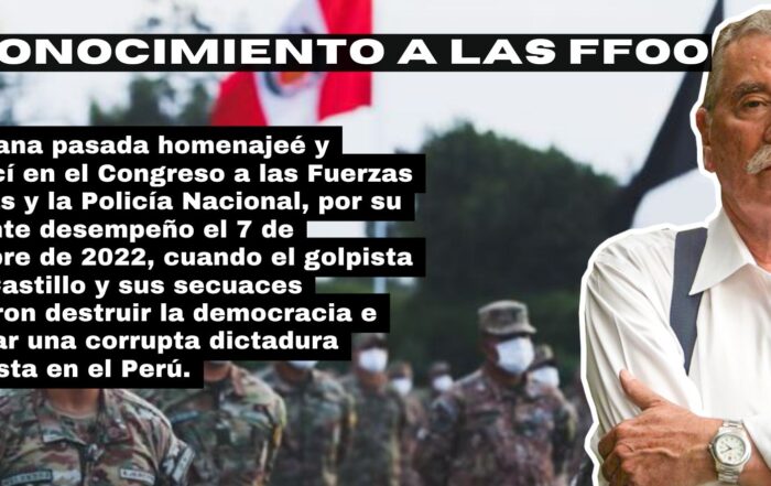 La semana pasada homenajeé y reconocí en el Congreso a las Fuerzas Armadas y la Policía Nacional, por su excelente desempeño el 7 de diciembre de 2022, cuando el golpista Pedro Castillo y sus secuaces [...]